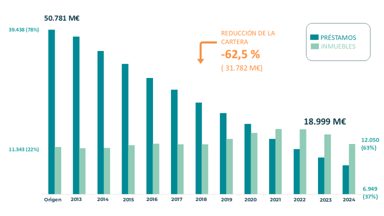 Sareb ha reducido su cartera en 18.999 millones de euros, un 62,5%. Además, sigue transformando préstamos en inmuebles (viviendas, suelos, oficinas, naves…), que suelen ser más fáciles de vender.